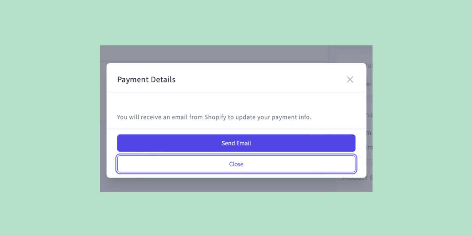 4. A box will appear in the center of the page. Click "Send Email," and Shopify will email instructions to update your payment information.